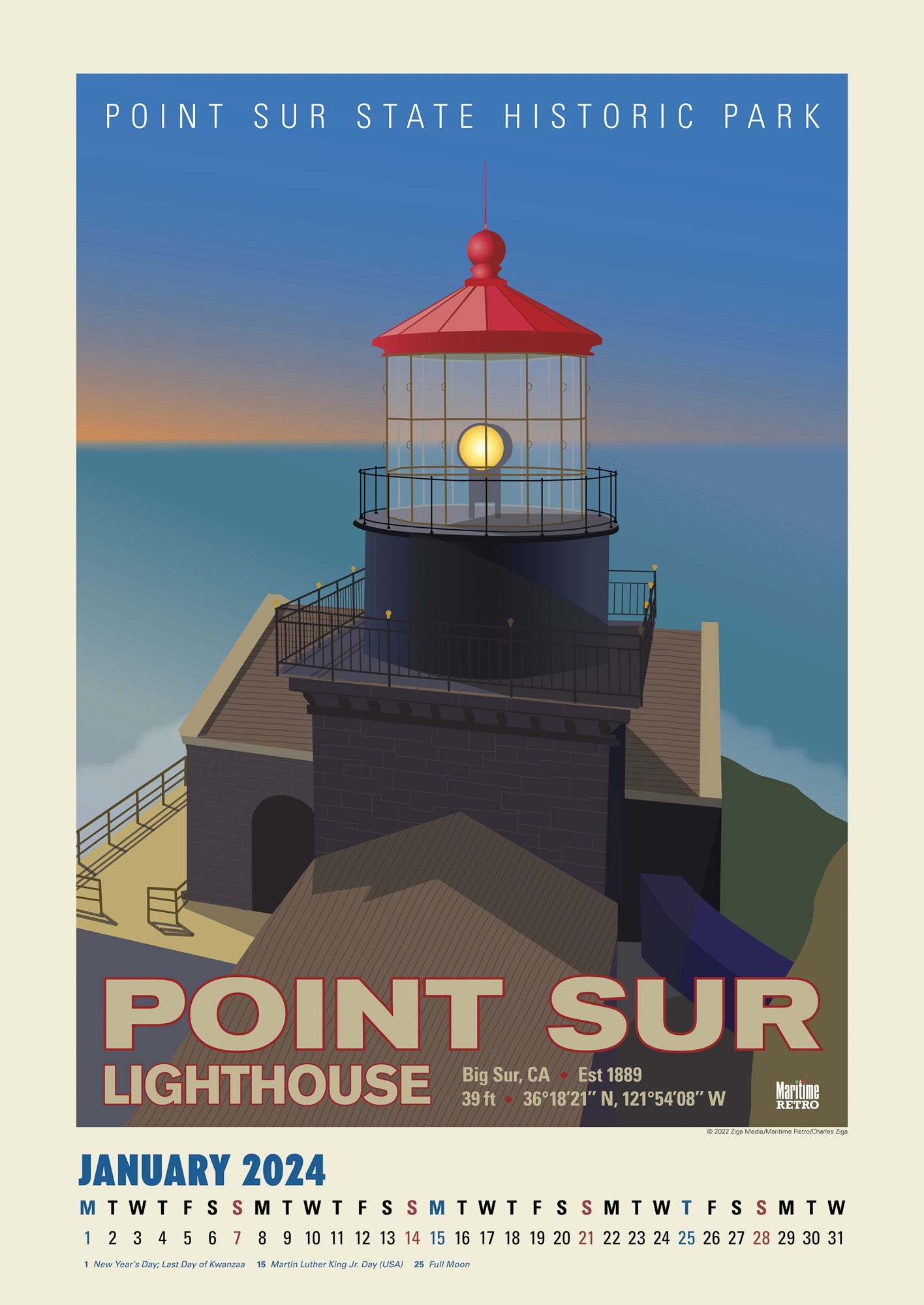 Pacific Coast Lighthouses Oversize Wall Calendar 2024, 13.38” x